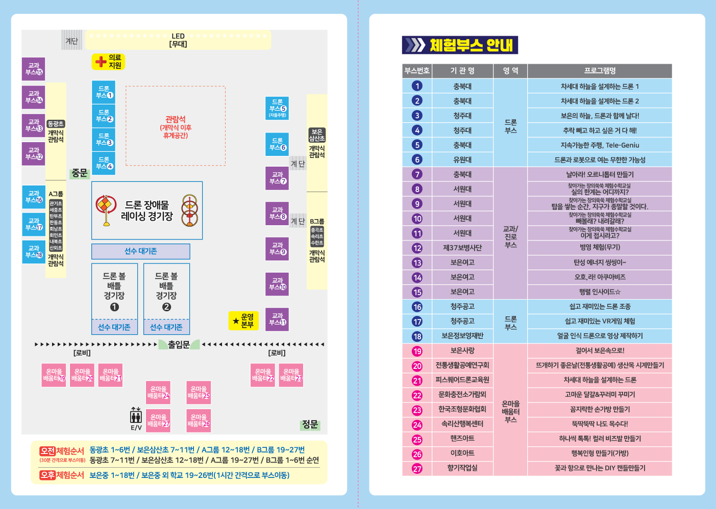 부스 : 유원대학교 드론로봇응용학과 운영/ 충북대학교, 청주대학교 참여 계획
